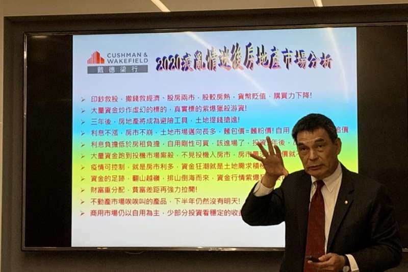 不過,顏炳立話鋒一轉指出,土地交易行情是跟著疫情走,但今台灣防疫成功,對房市就是利多,而全世界印鈔救股,也因利息低,過去,土地猶如麵粉,而現在麵粉等同於麵包價(成屋),買到都能短期獲利出場,是故資金狂潮對土地需求積極,自用、建商搶進不追價,預估房地產三年後將在成為避險工具。