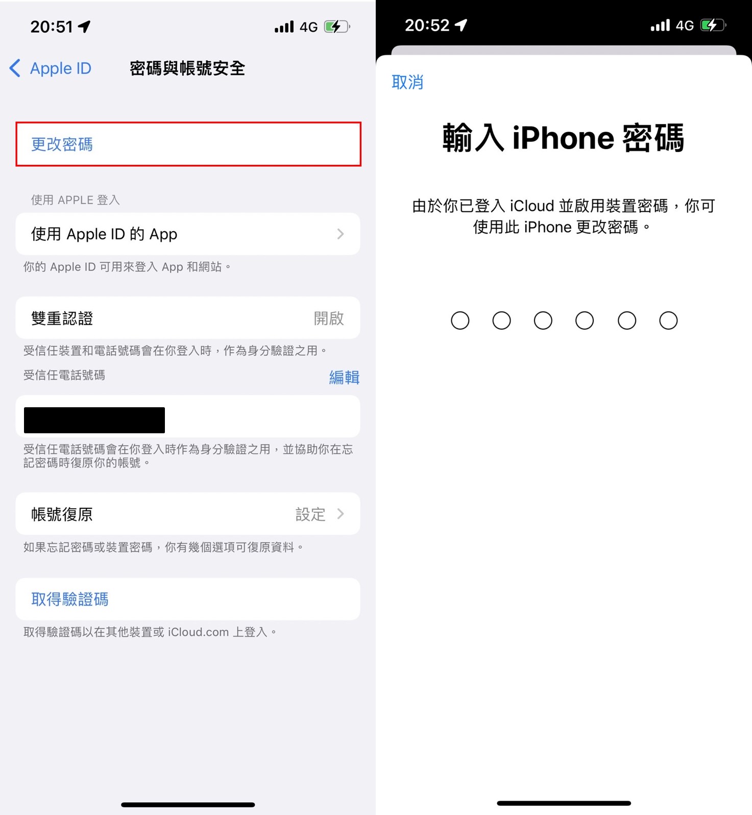 3、手機會要求輸入已登入過iPhone螢幕解鎖密碼